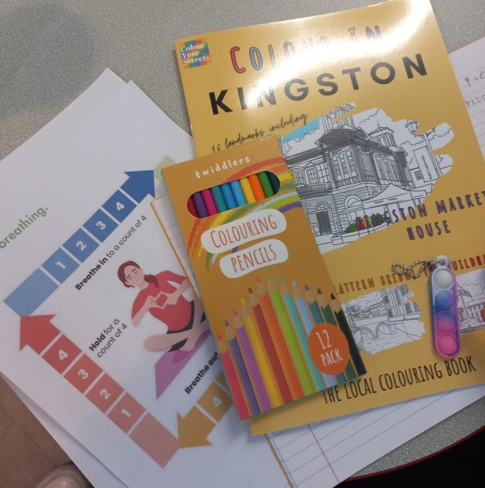 The second workshop helped students explore emotions and practical strategies for stress management. Thanks to Colour Your Streets for offering us a discounted rate, each participant received a Kingston-themed colouring book, providing a fun and relaxing activity. Many learners continued working on their designs at home.