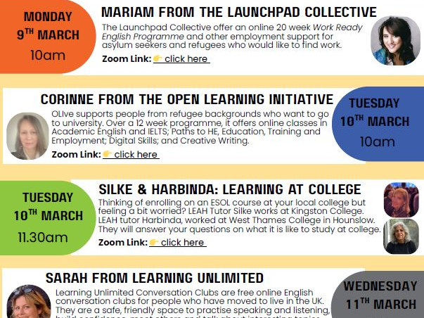 Latest News March 23, 2026Further Learning Festival March 2026Read More March 20, 2026Wimbledon Foundation Annual Evening ReceptionRead More March 20, 2026The Mayor’s Annual Charity Dinner 2026Read More February 5, 2026Hounslow Together Speaker Series Wednesday 18 February 2026Read More January 28, 2026EasyfundraisingRead More January 22, 2026Big Tech Mop Up!Read More January 19, 2026Pantomime fundraiser for LEAHRead More January 16, 2026Comedy Night fundraiser for LEAHRead More December 22, 2025Christmas opening hours 2025Read More December 21, 2025Christmas Newsletter 2025Read More December 19, 2025ESOL Learners’ Trip to the British MuseumRead More November 11, 2025The Mayor of Kingston visits our officeRead More